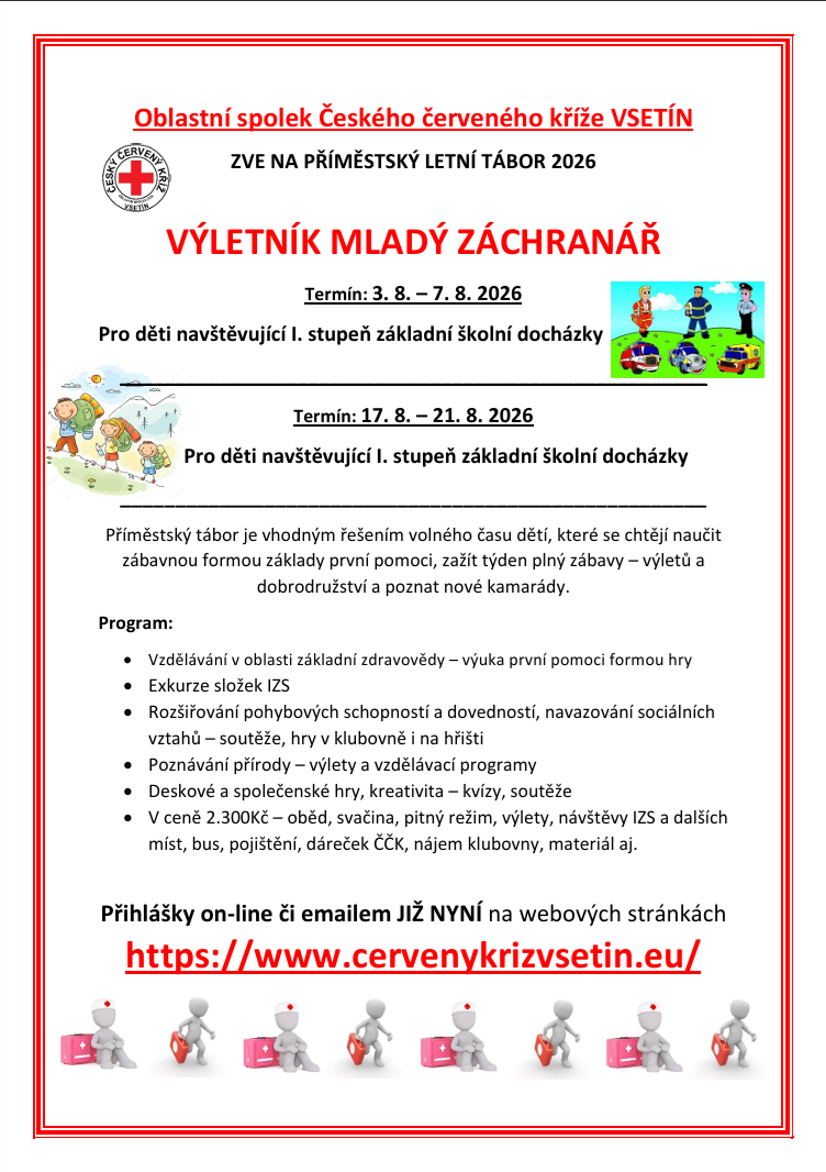 Příměstské tábory s OS ČČK VSETÍN v nabídce.
